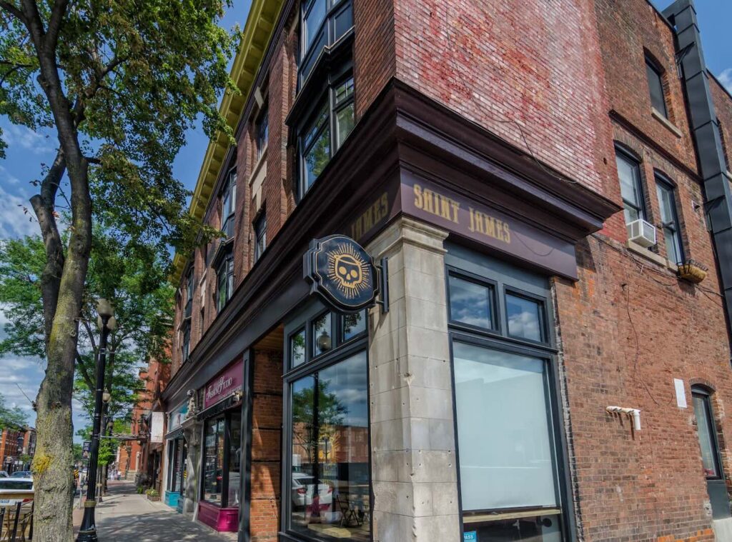From King William, head north or west depending on your vibe. On James Street North, stop into The Brain (owned by Junior Boys’ own Jeremy Greenspan), jazz and blues bar and restaurant Henry’s on James, or Farside for drinks and fun “standing on the pulse” energy. Don’t miss Academica Hall. Yes, there’s a real airplane suspended inside