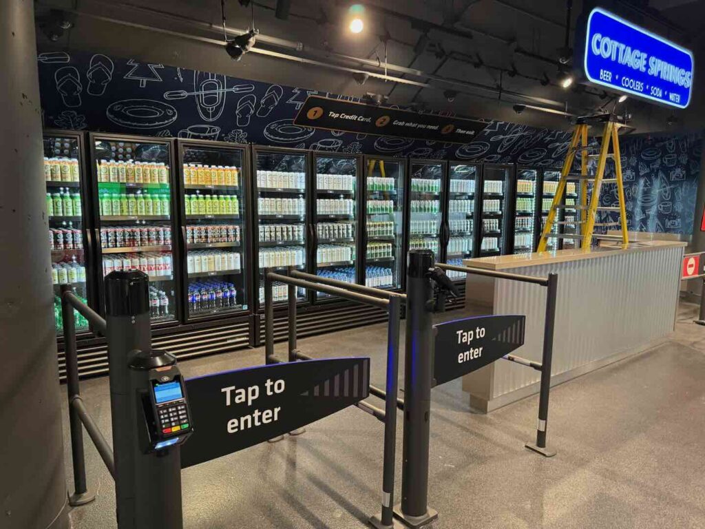 There are self-serve markets that scan your credit card on the way in and automatically charge you for what you take out. In fact, the whole venue is now cash-free.