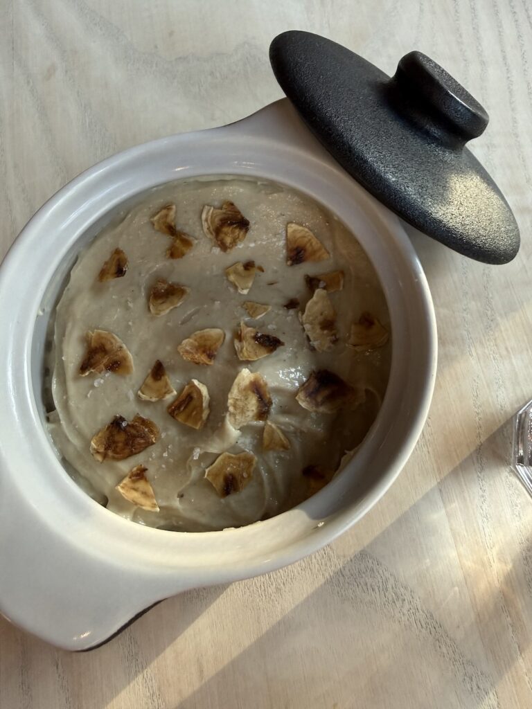 Desserts are not in his wheelhouse, but the banana pudding (dulce de leche, dehydrated banana, lemongrass salt) has a story. It was inspired by Horsley’s love of the (always and forever) banana pudding at Shorty’s Pizza.