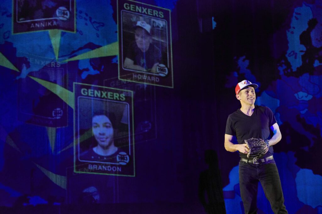 In a trilogy of BOOM shows, Miller is a tour guide on 75 years of history, headlines, pop culture interspersed with his own family’s story. It started with BOOM, which documented the coming of age of his parents’ generation. BOOM X is Miller’s own Gen X story, and BOOM YZ looks at Miller’s kids’ maturation into adulthood.