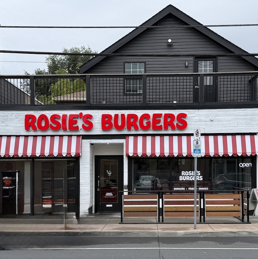 When my niece tells me there’s a burger joint I must visit, I take her advice. She wasn’t wrong: Rosie’s Burgers delivers a top-notch smash burger. Founded in 2020 by brothers Daniel and Dustin Gelman, who share a passion for good food, it has the goal of becoming a neighbourhood gathering place. “Rosie” is their grandmother, whom they describe as “a woman with an incredible ability for making anyone in her presence feel at home, Rosie’s is a nod to the enduring tradition of genuine hospitality.” In addition to burgers (regular and vegetarian), they offer chicken sandos, terrific crinkle fries, onion rings, poutine, and shakes. Puddings include banana and sometimes there are specials, such as Mom’s Mocha Pudding. All of this can be catered. With several locations in Ontario, Concession is their first step into Hamilton.