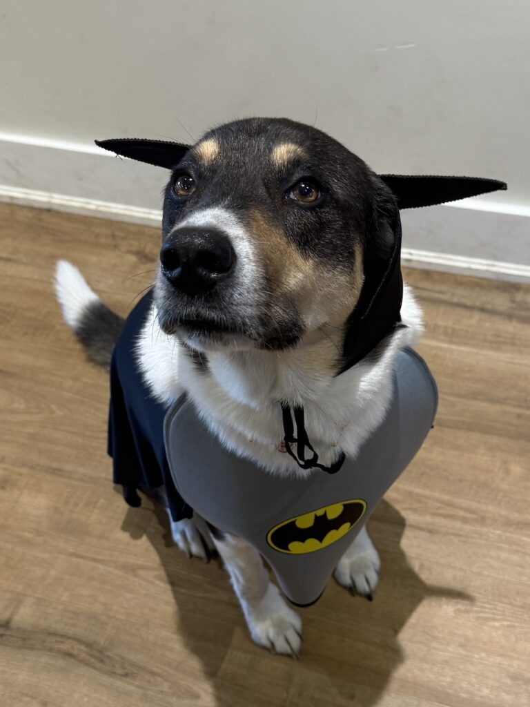 Personality traits: He’s a super sweet boy, living with three cats but he never bothers them. He LOVES attention whenever we have people over; he’s a real hog for the spotlight.