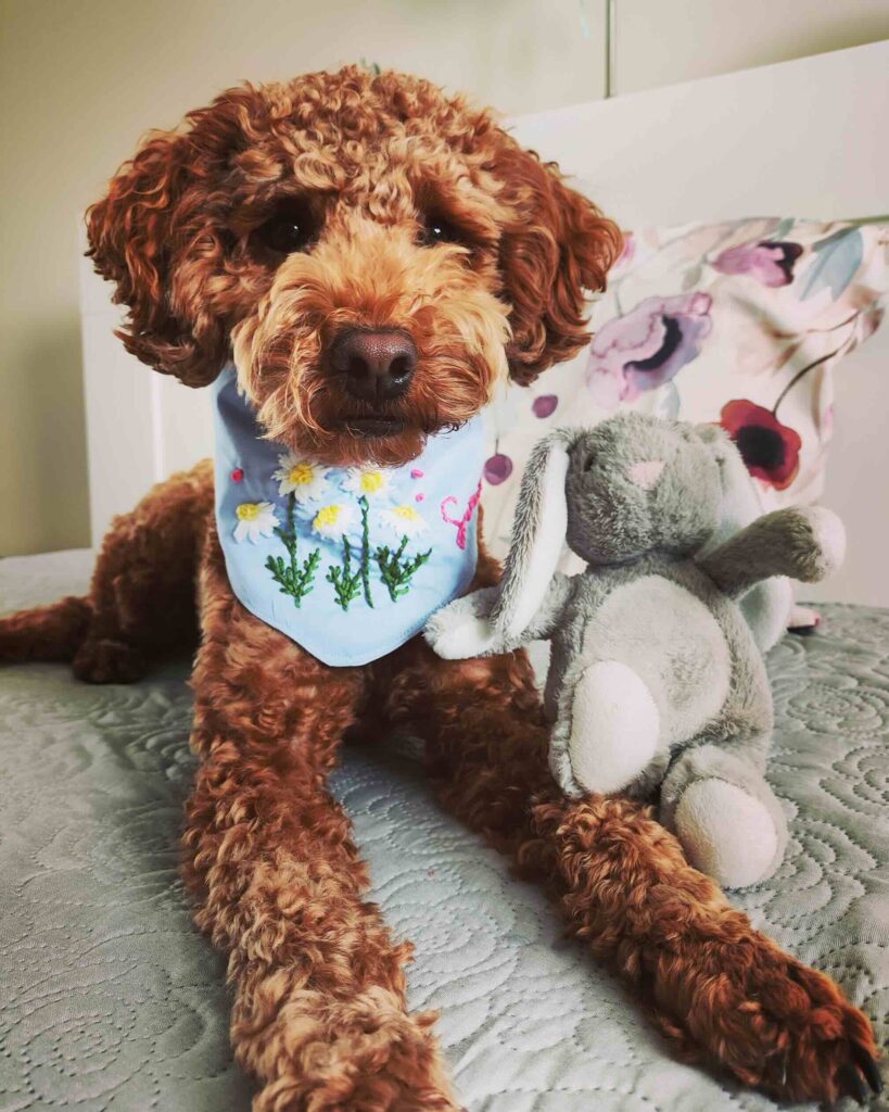 What she loves: Rue loves being out and about! She loves picking out toys from Homesense, tagging along on any car ride she can and trekking downtown on the weekends to her favourite cafe for a pup cup. When she’s home she loves sunbathing in any patch of sunlight she can find and tearing all the stuffing out of every toy she owns.