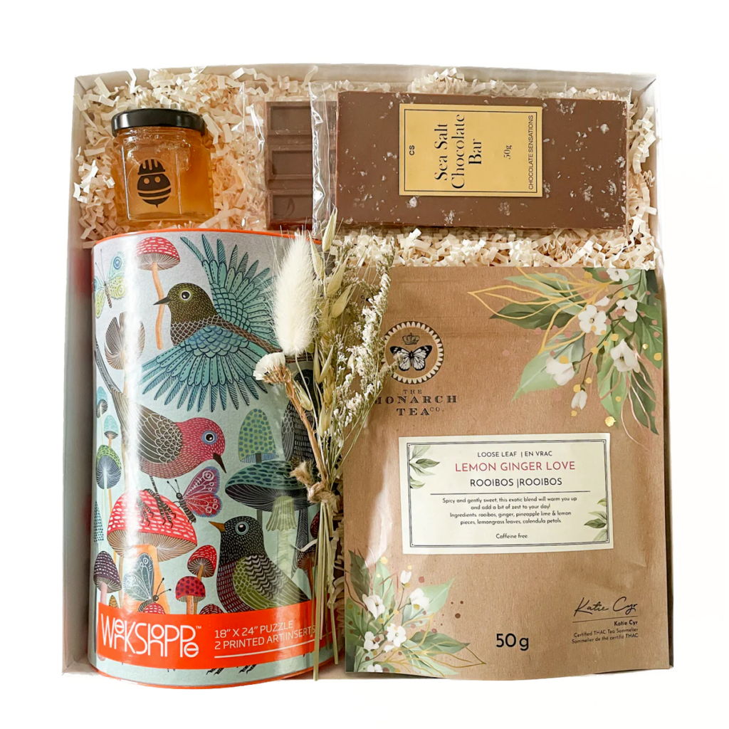The Weekend gift box gives your recipient the opportunity to stay in and curl up with a puzzle and hot tea. A perfect choice for a client gift, employee gifting, teachers, or host gift. This local business is online only, and the website is very simple and makes it easy to order a gift and have it delivered. Flat rate shipping within Canada. Gift concierge service also available if you’d like help creating and shipping custom gifts.