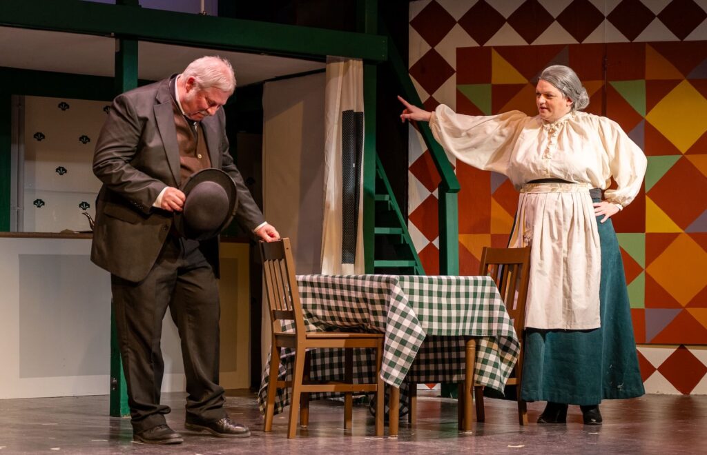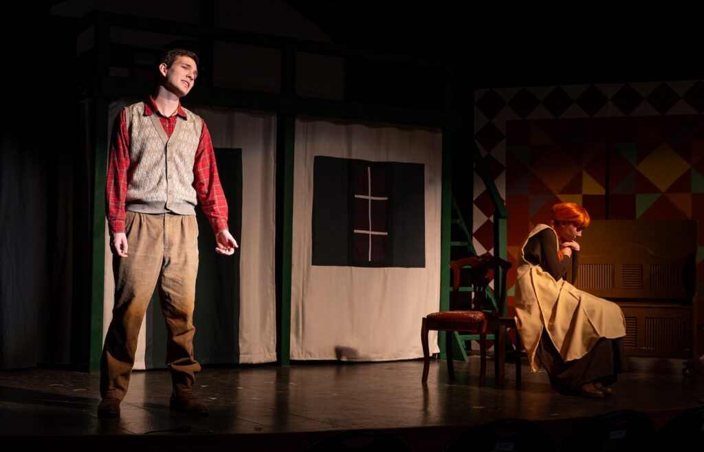 Lily Galivan brings unabashed enthusiasm and charm to her Anne Shirley. She is feisty, irrepressible, and funny, a whirling dervish with bright red braids. I’m astonished that Galivan is still in high school, given her ease and command of the stage. In this iteration, Anne’s energy, her outspoken and precocious nature is dialled up, whereas the character’s essential sensitivity is underplayed a little. We get glimpses at the past horrors that have fuelled Anne’s flights of fancy and escapism, but musical Anne focuses more on her razzle dazzle. It’s moments with Al Helsdon (as Matthew Cuthbert) where Galivan’s Anne shows her softest side, and Helsdon’s Matthew responds with a warm, gentle understanding and empathy that is genuinely touching to see.