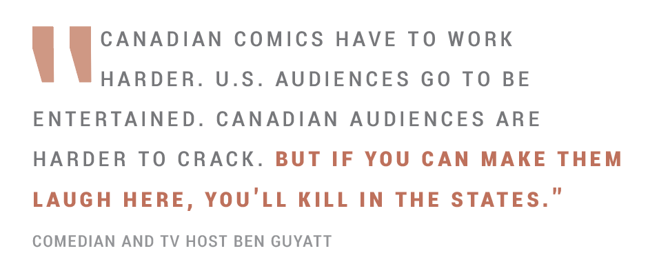 “Canadian comics have to work harder,” he says. “U.S. audiences go to be entertained. Canadian audiences are harder to crack. But if you can make them laugh here, you’ll kill in the States.”