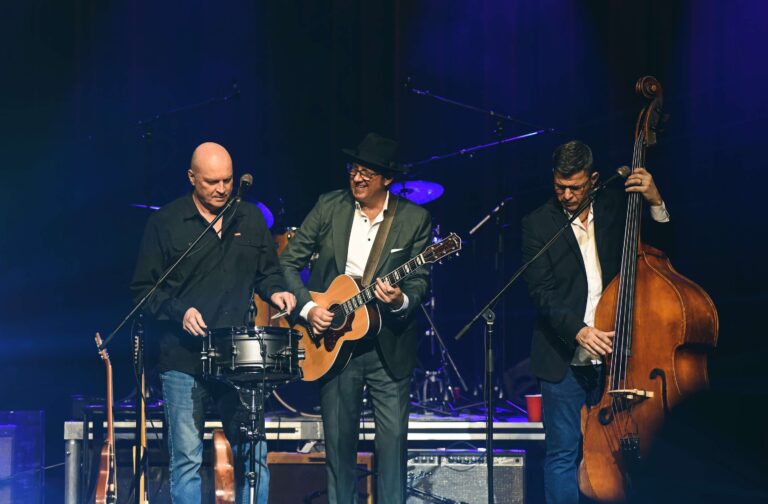 Colin Lapsley, Colin Linden and Steve Strongman at Steve Strongman's holiday show, Ancaster Memorial Theatre, Dec. 5