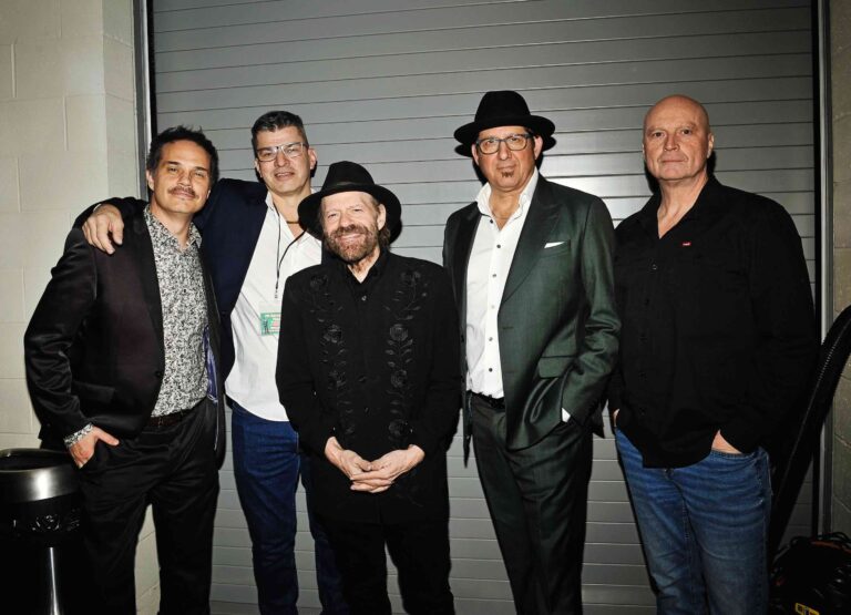 Joel Parisien, Colin Lapsley, Colin Linden, SteveStrongman, and Dave King at Steve Strongman's holiday show, Ancaster Memorial Theatre, Dec. 5