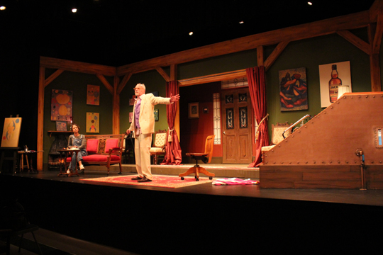 We learn that the handsome Jack is a successful artist with an ego to match. His art seller, Vincent Cummings, (Mike Mitton) has been invited to dinner and Jack is going to confront him about why Vincent is not getting Jack’s work sold. The artist is riled up and brandishing a gun.