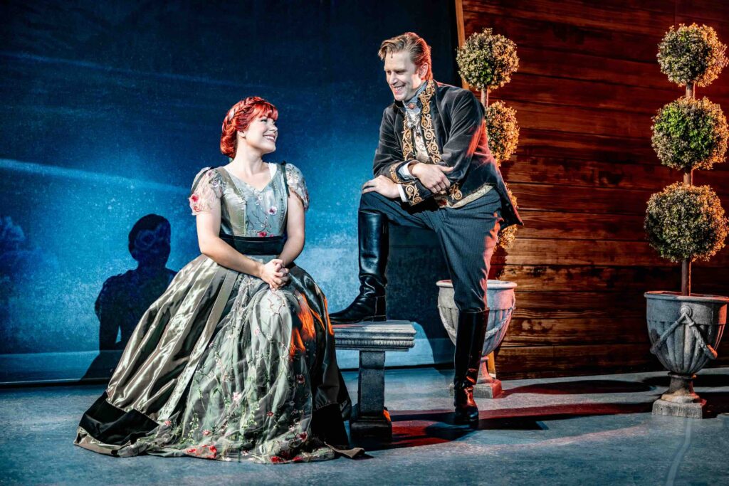 Jessica Gallant as the charming, awkward, and unfailingly optimistic Anna steals every scene she’s in with her flawless delivery of the humour required of the role. She is simply outstanding. A dancing scene between Anna and Hans (Gabriel Antonacci) is hilarious, as is Gallant’s frequent hamming behind his back as she falls for the handsome prince.