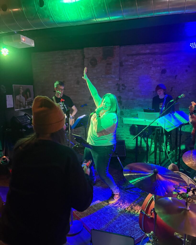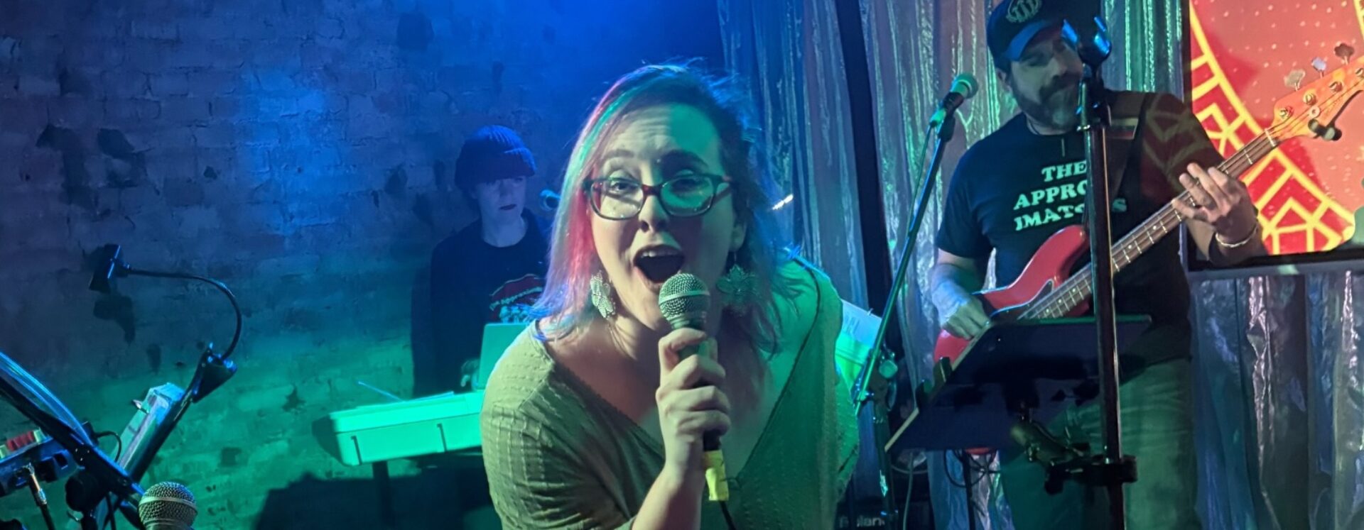 The first-ever performance by The Approximators was at the Sharp Words Literary Cabaret in February 2023. Local author Amy Jones was one of the first people to sing with the band.