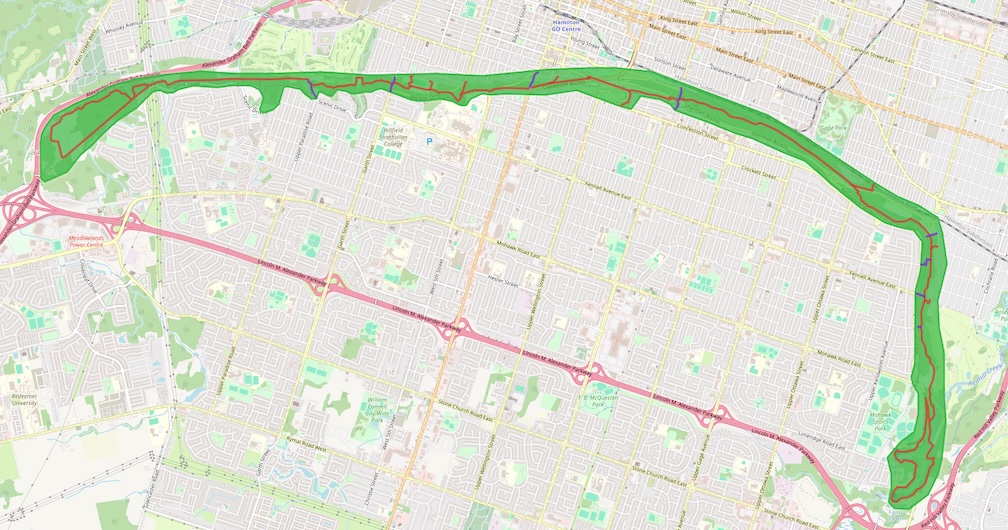 Much like other greenspaces in Hamilton, this part of the city should be formally designated a park. A unique park, something not found in any other city in this part of the country. Right now, the space lacks any sense of cohesive identity, but making it a park opens the door to proper planning. Geographically, this park could span the area of the escarpment between the two river valleys on either side: Chedoke and Red Hill. This encompasses roughly 16 kilometres of trails. There are a number of staircases connecting the upper and lower city that provide a unique opportunity to climb through the biosphere. Adjacent neighbourhoods give tens of thousands of residents quick access to the park. Of course, there are spectacular waterfalls to enjoy, and throughout the journey across the city, countless memorable views.